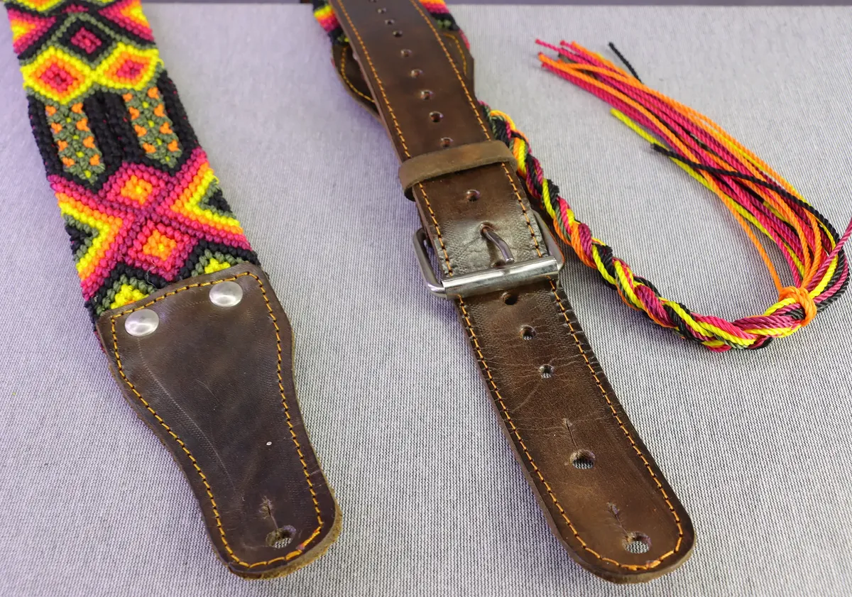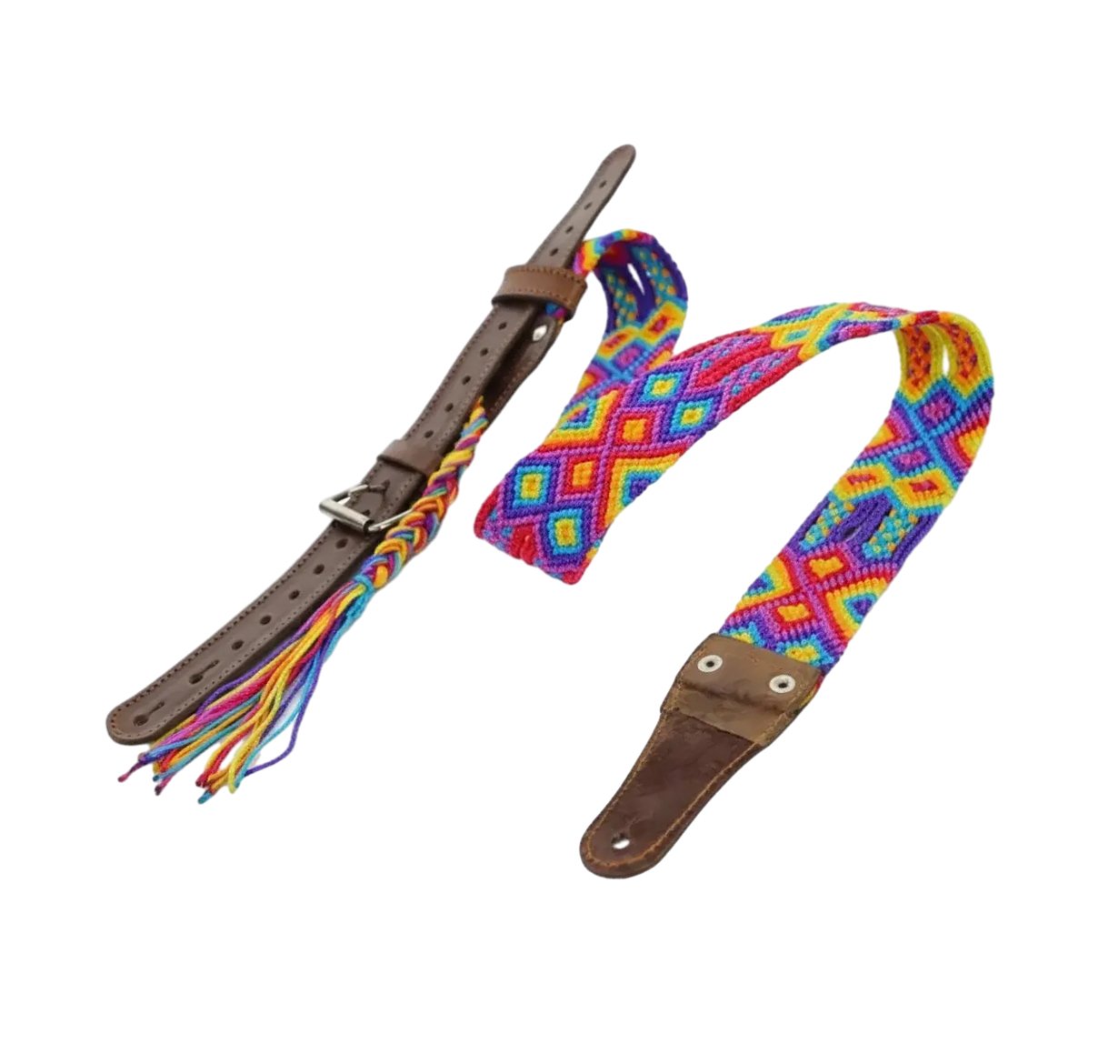 Correa para Guitarra Tejido a Mano Diseño Étnico y Piel Genuina