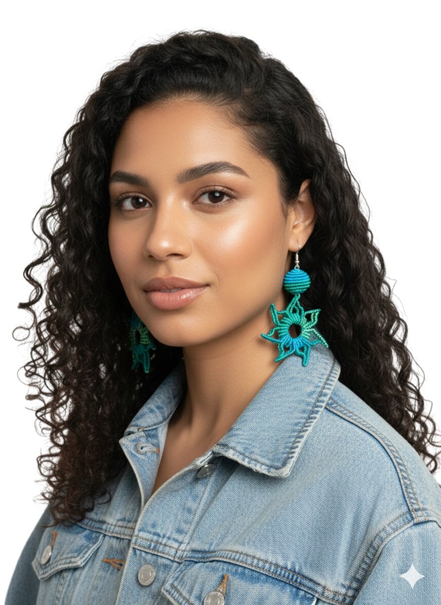 Con un cierre seguro, estos aretes son fáciles de poner y quitar, brindando comodidad y confianza en cada uso. Aunque no son hipoalergénicos, su diseño artesanal y su estética vibrante los convierten en una opción perfecta para quienes valoran la autenticidad y el estilo en sus accesorios.