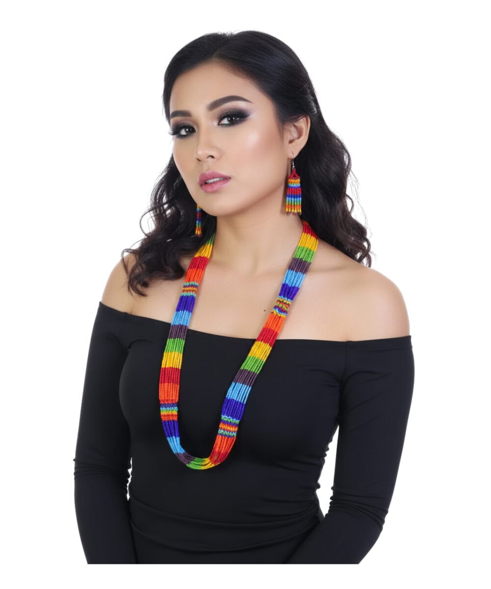 Collares de Mostacillas Set Collar Zulu Artesanal. Diseñados especialmente para mujeres que buscan un toque moderno y único en su estilo, estos collares largos de chaquira son perfectos para complementar cualquier atuendo, desde el más casual hasta el más sofisticado.