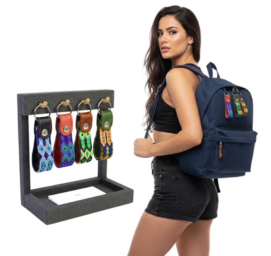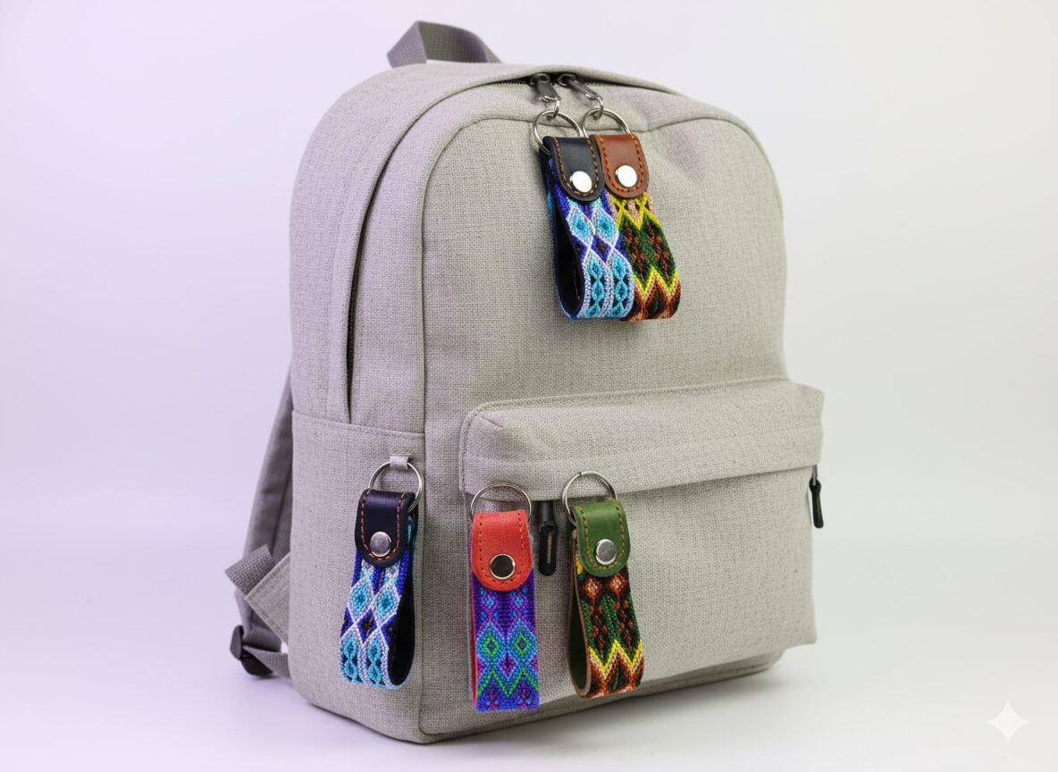 El material de hilo tejido y piel le da a estos llaveros un toque único y artesanal, perfecto para aquellos que buscan un accesorio con estilo. El diseño tejido en cada llavero le da un aspecto elegante y sofisticado, haciendo que destaquen entre tus llaves.