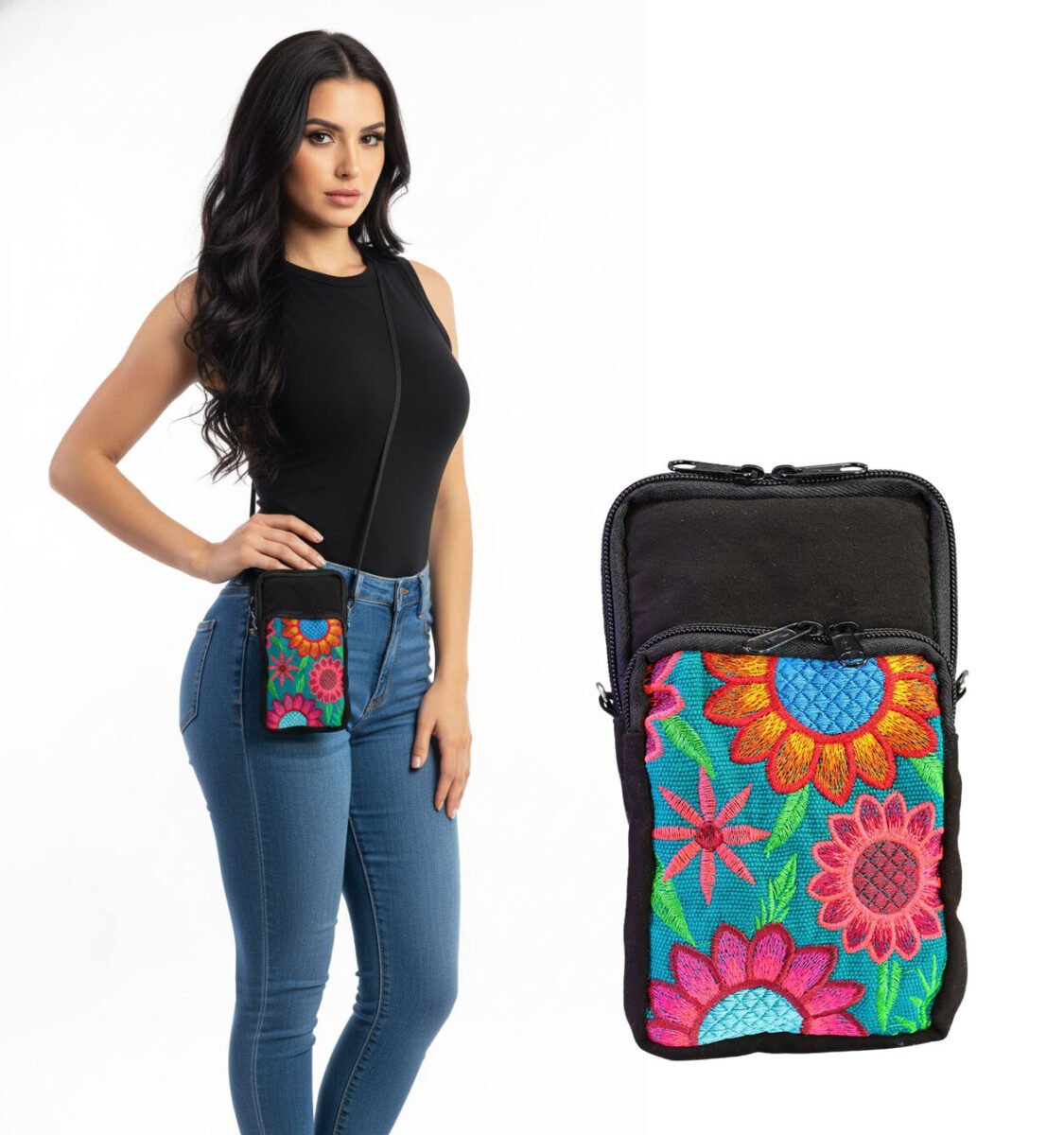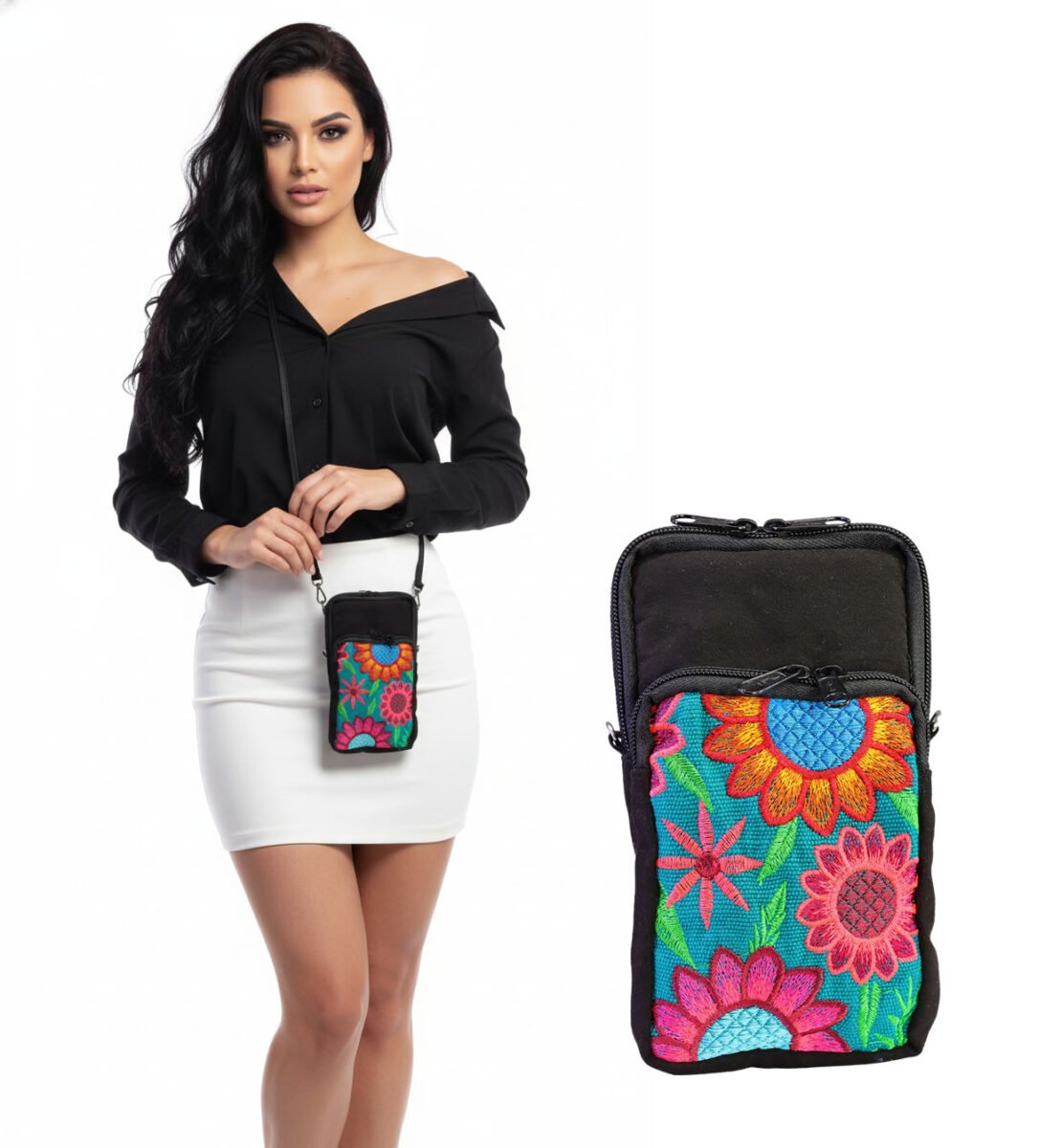 Mini Bolsa Porta Celular Bordado Artesanal Para Dama