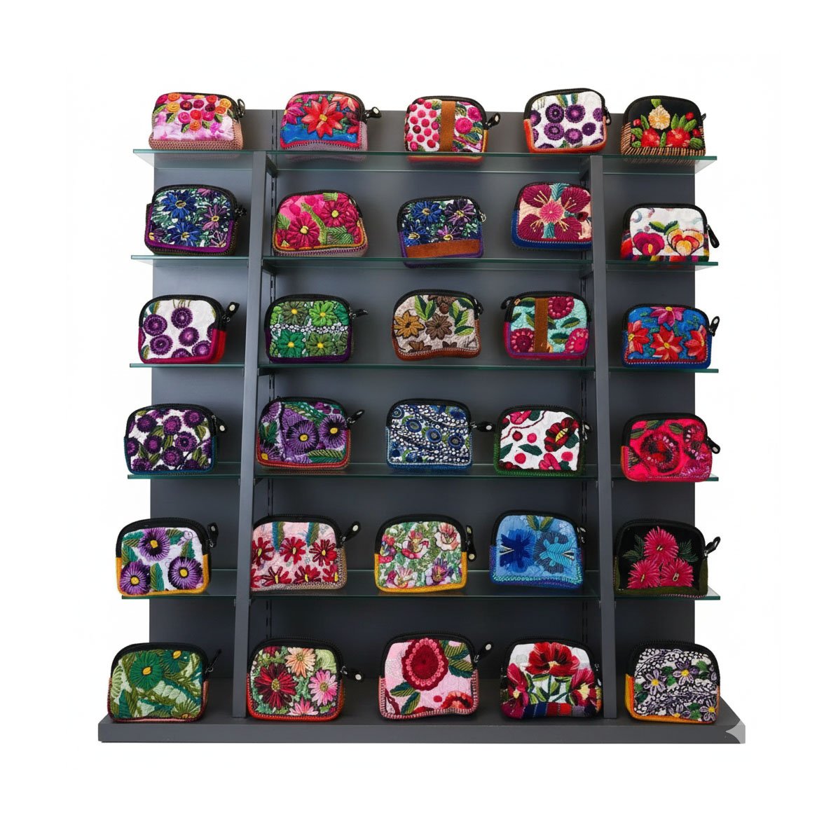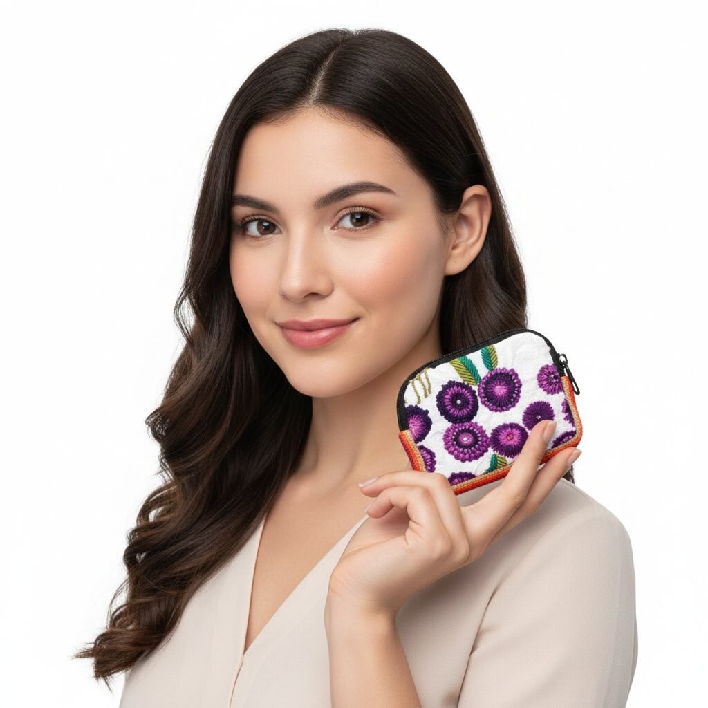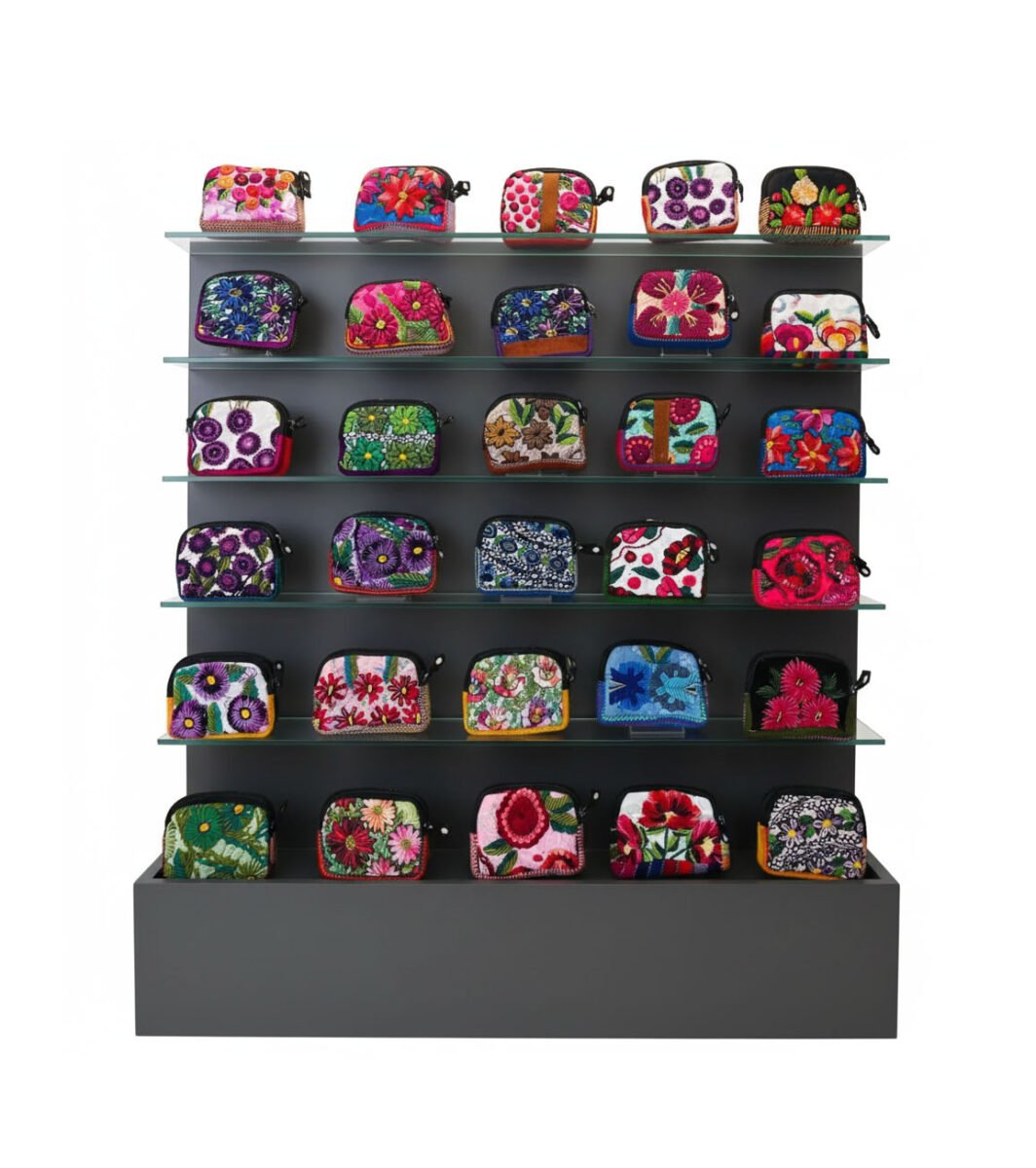 Con un tamaño práctico, son perfectos para llevar en el bolso o incluso como un accesorio independiente. La variedad de bordados en cada pieza asegura que siempre tengas un monedero que complemente tu atuendo y exprese tu personalidad.