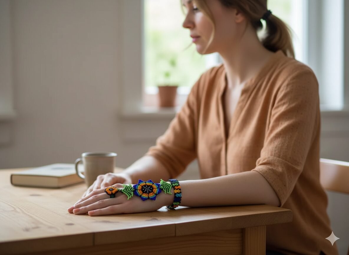 La Pulsera Con Anillo De Flor Chaquira es el accesorio ideal para quienes buscan un toque de elegancia y modernidad en su estilo diario. Con un diseño que combina mostacillas de alta calidad, esta pulsera es perfecta para complementar cualquier atuendo, ya sea casual o de ocasión especial. Su cierre de botón asegura un ajuste cómodo y seguro, permitiendo que la lleves puesta durante todo el día sin preocupaciones.