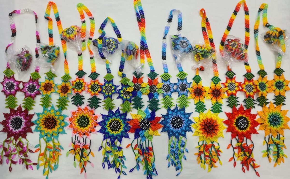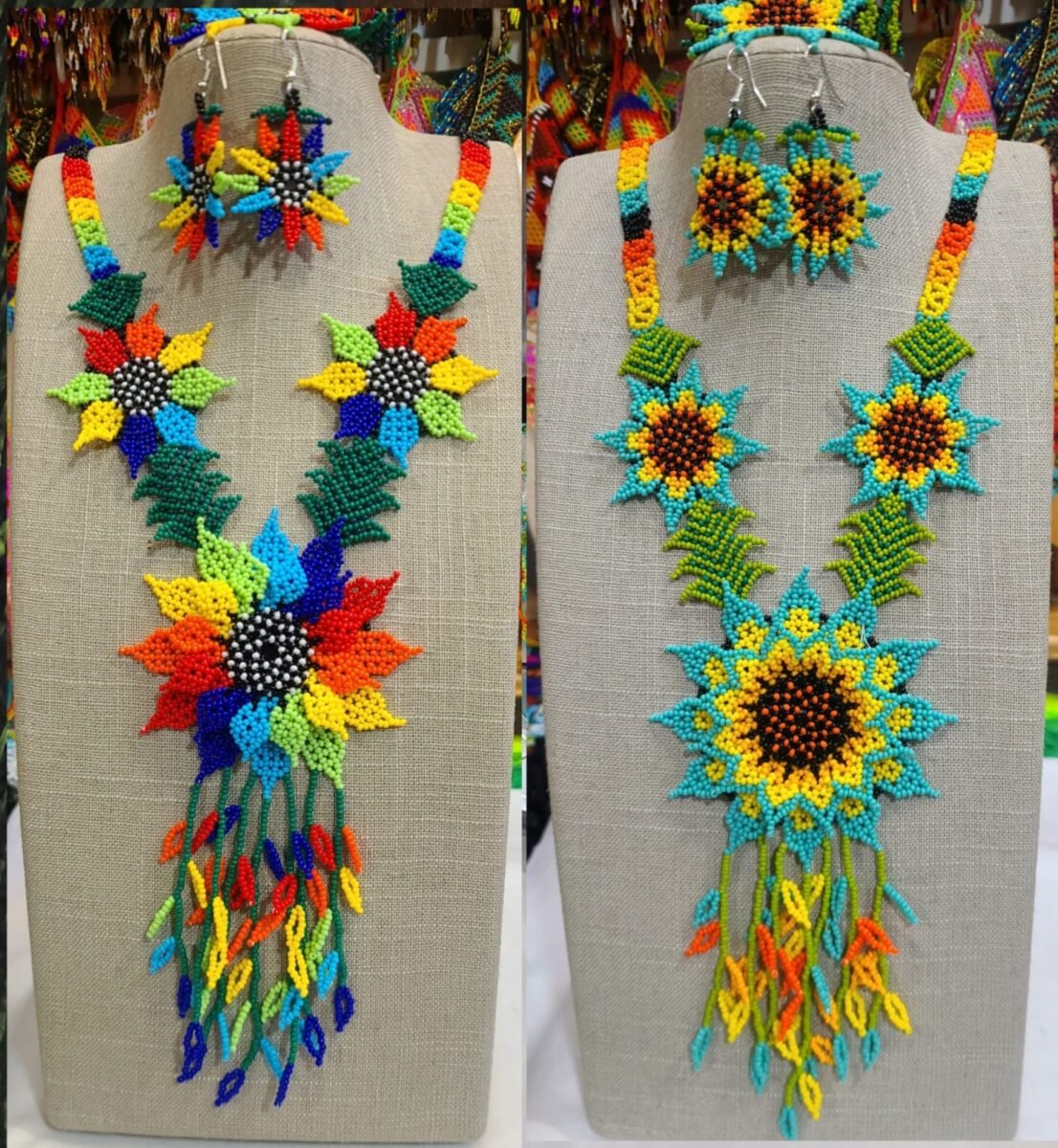 Descubre la elegancia y el estilo único del Set Collar Largo De Girasol Con Aretes y Pulsera. Este collar, elaborado con delicadas mostacillas, presenta un diseño largo de 80 cm que realza cualquier atuendo, aportando un toque artesanal y huichol que lo distingue. Ideal para mujeres que buscan un accesorio versátil, este collar se adapta tanto a ocasiones informales como a eventos más sofisticados.